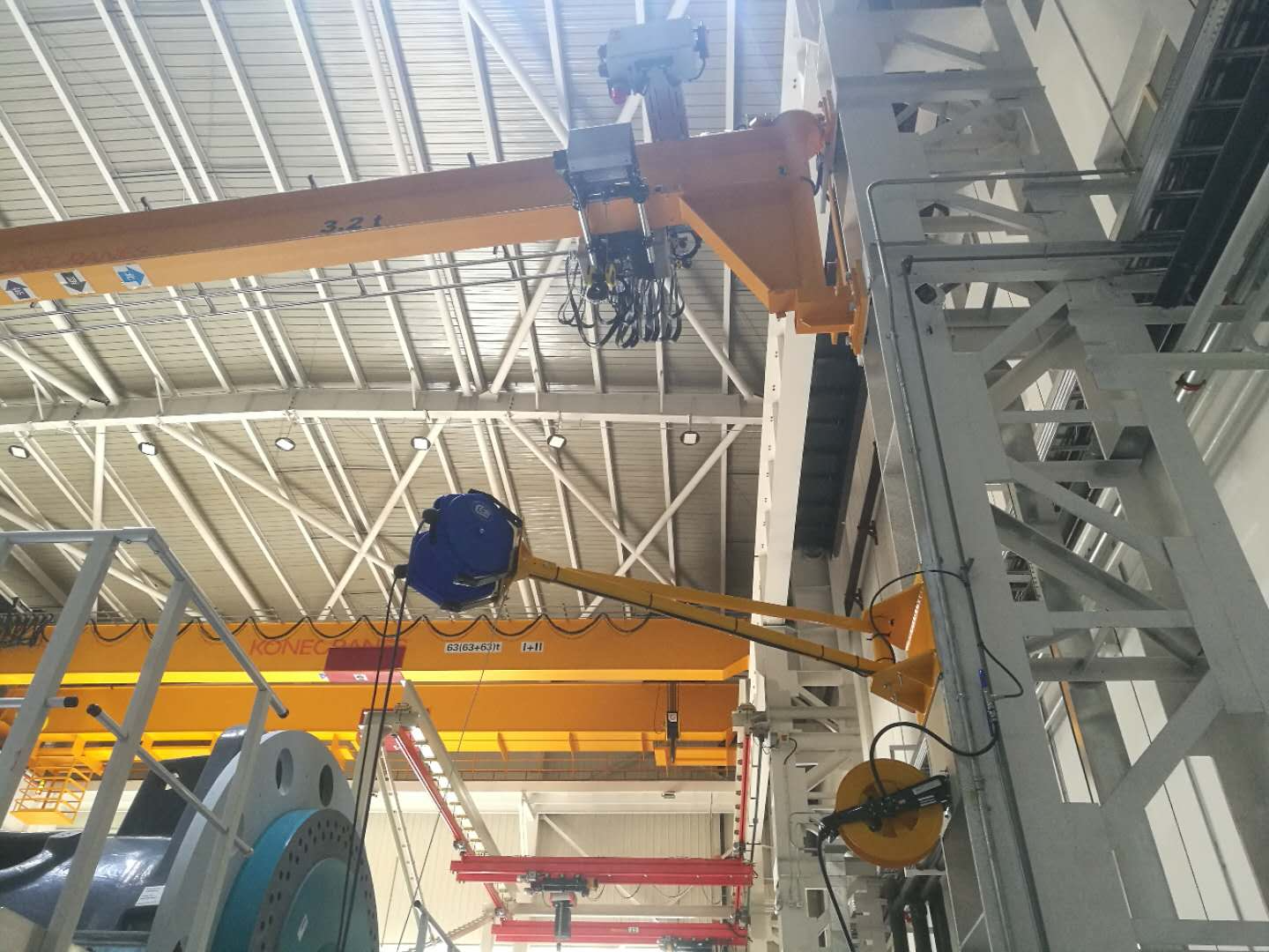 KLUKE解决方案:克鲁克壁挂式旋臂起重机(墙壁吊)是一种经济的重载方案,提供了对近圆形工作区域内良好的工作覆盖,并支持工具平衡器、气动平衡器、真空提升工具和葫芦等。根据现场工况,我们将其安装在厂房现有钢结构上,保证设备安全稳定使用的同时,有效提高了该工位的生产效率。● 该方案不影响客户正常空间使用,经济实惠,且无需立柱,最大化利用了厂房空间,巧妙运用了克鲁克成熟的墙壁吊结构,实现卷线器的工作要求;