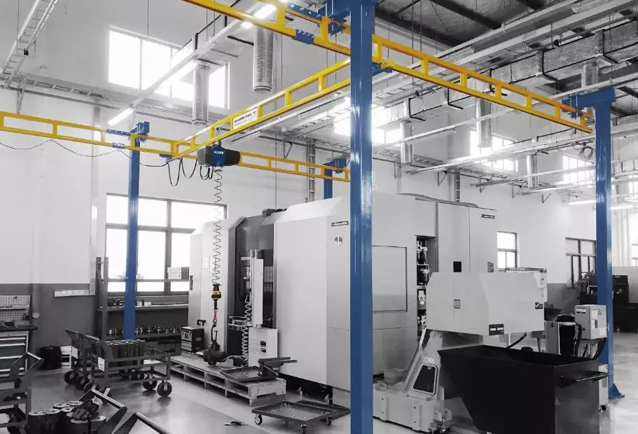 客户难题:加工中心上料,每天需要加工近20个45KG的零件,没办法实现工件快速精准定位,这个岗位几乎没人能胜任,之前装了一台柔性KBK起重机,挂的是电动环链葫芦,问题依然得不到解决。